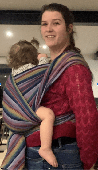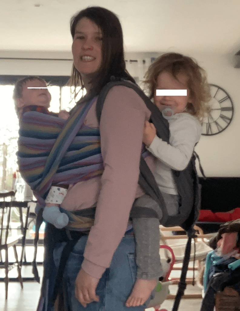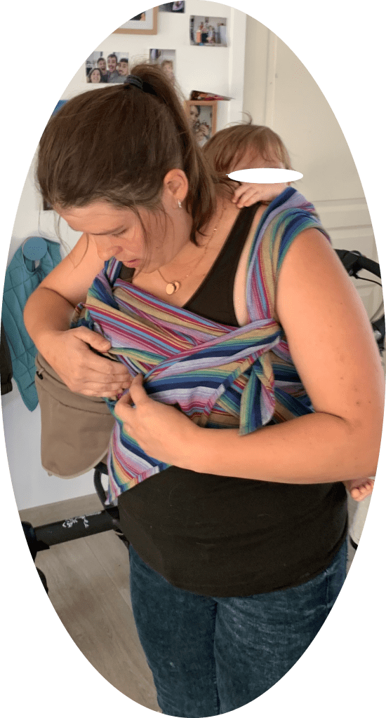 J’ai eu la chance de découvrir en atelier avant la naissance de ma fille : les écharpes de portage, leurs installations et ces ateliers m’ont été d’une grande ressource lors de mon post-partum, notamment lorsque le papa a dû reprendre le chemin du travail. Encore aujourd’hui, le portage, pour nous, est quotidien.